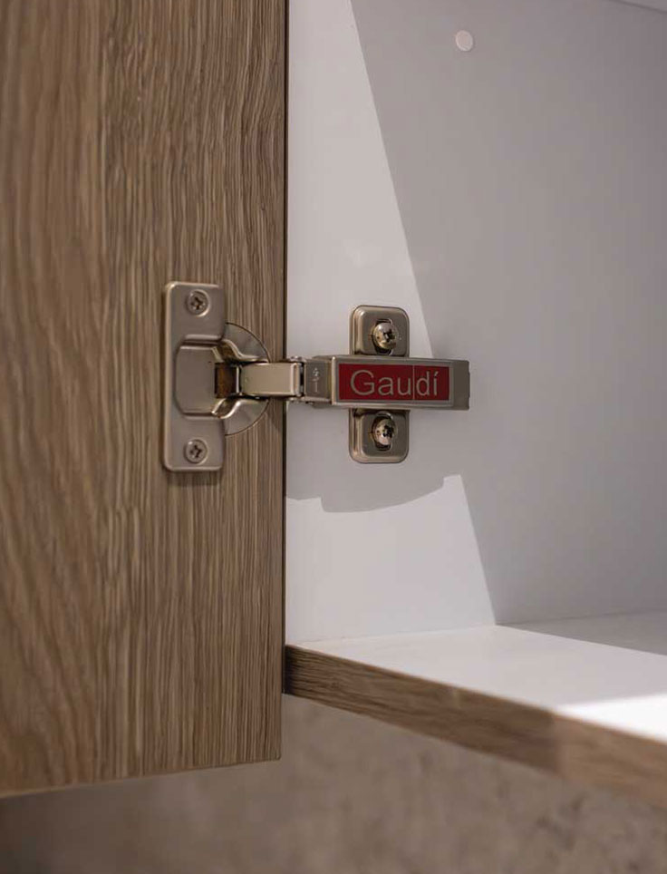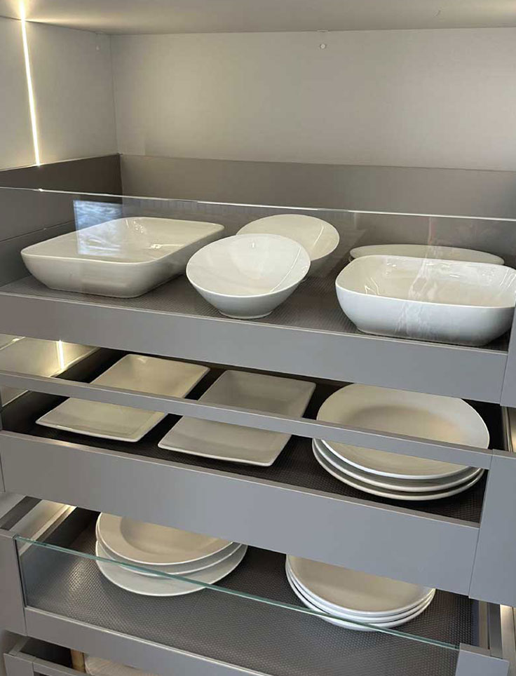Nuestros cajones están equipados con sistemas de cierre suave y correderas de alta calidad, garantizando un funcionamiento silencioso y sin esfuerzo.